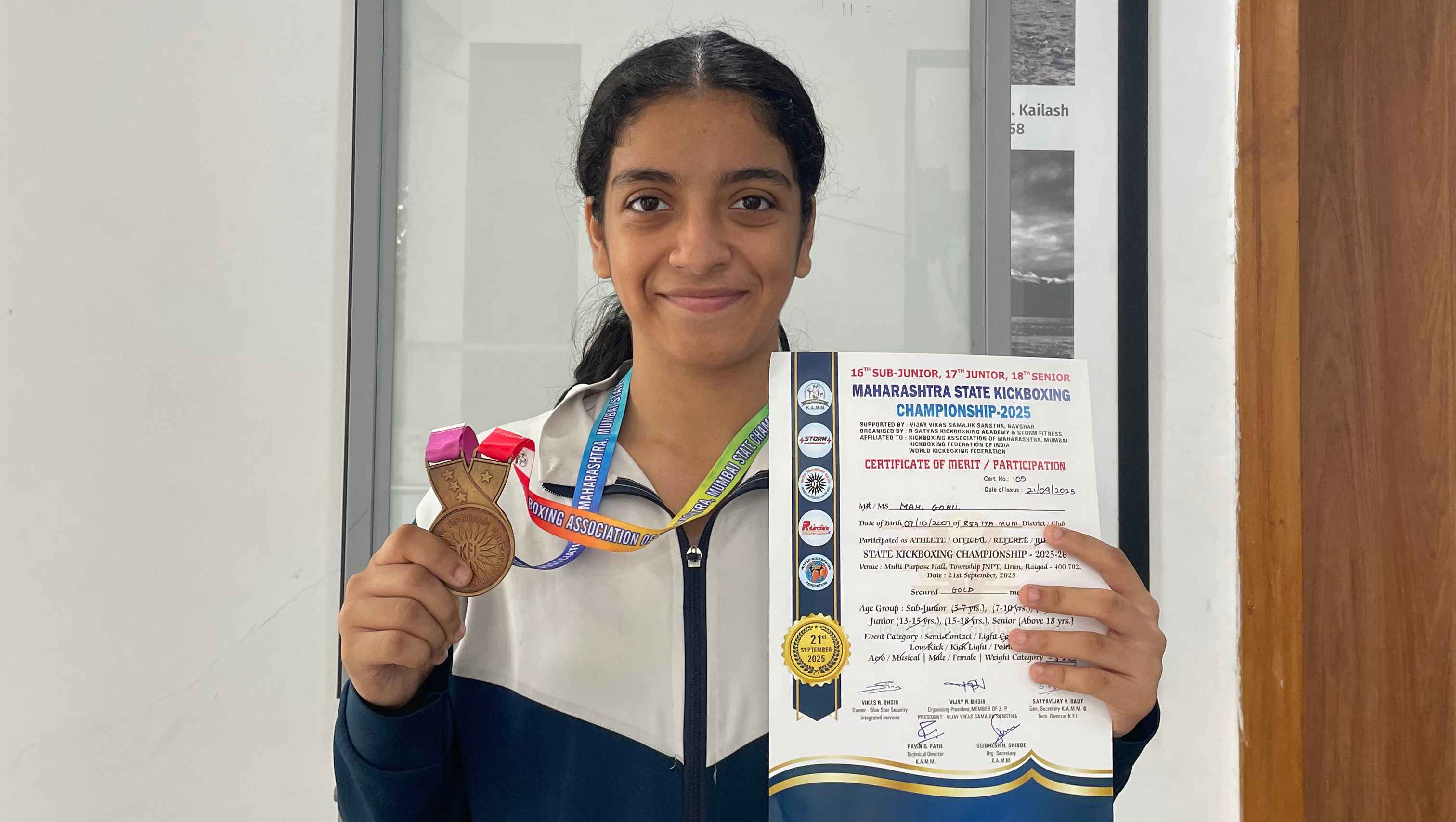 Mahi Gohil Wins Gold at Maharashtra State Kickboxing Championship 2025